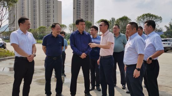 高博(左三)聽取桃江縣客運物流綜合樞紐項目建設(shè)進度。 胡衛(wèi)紅 攝